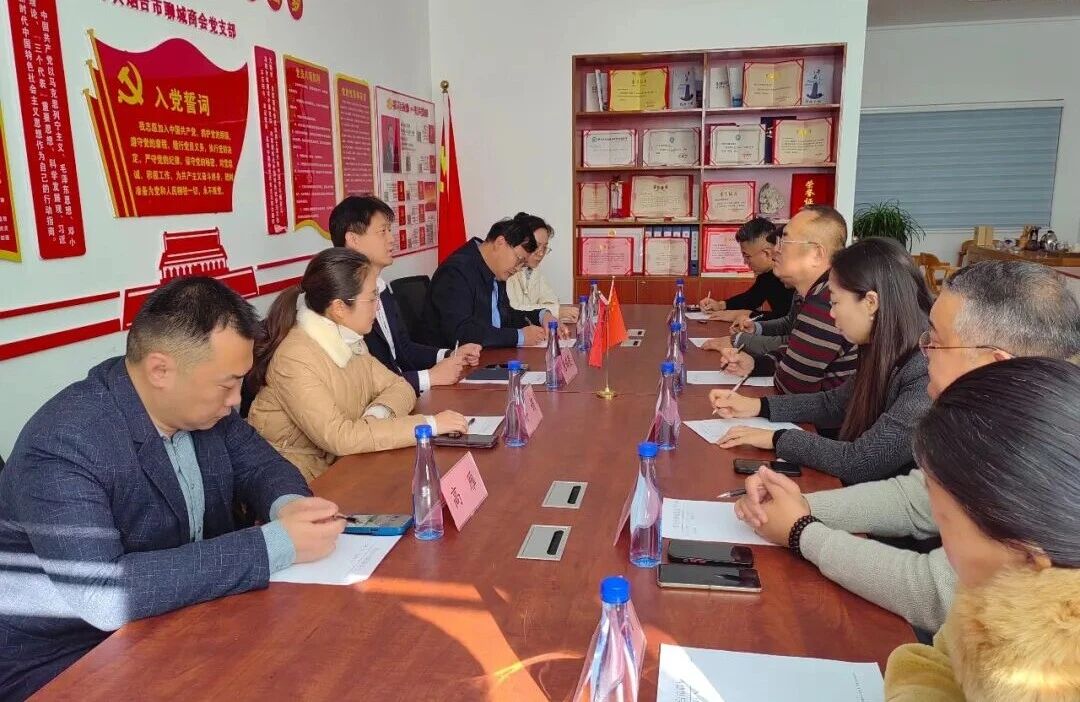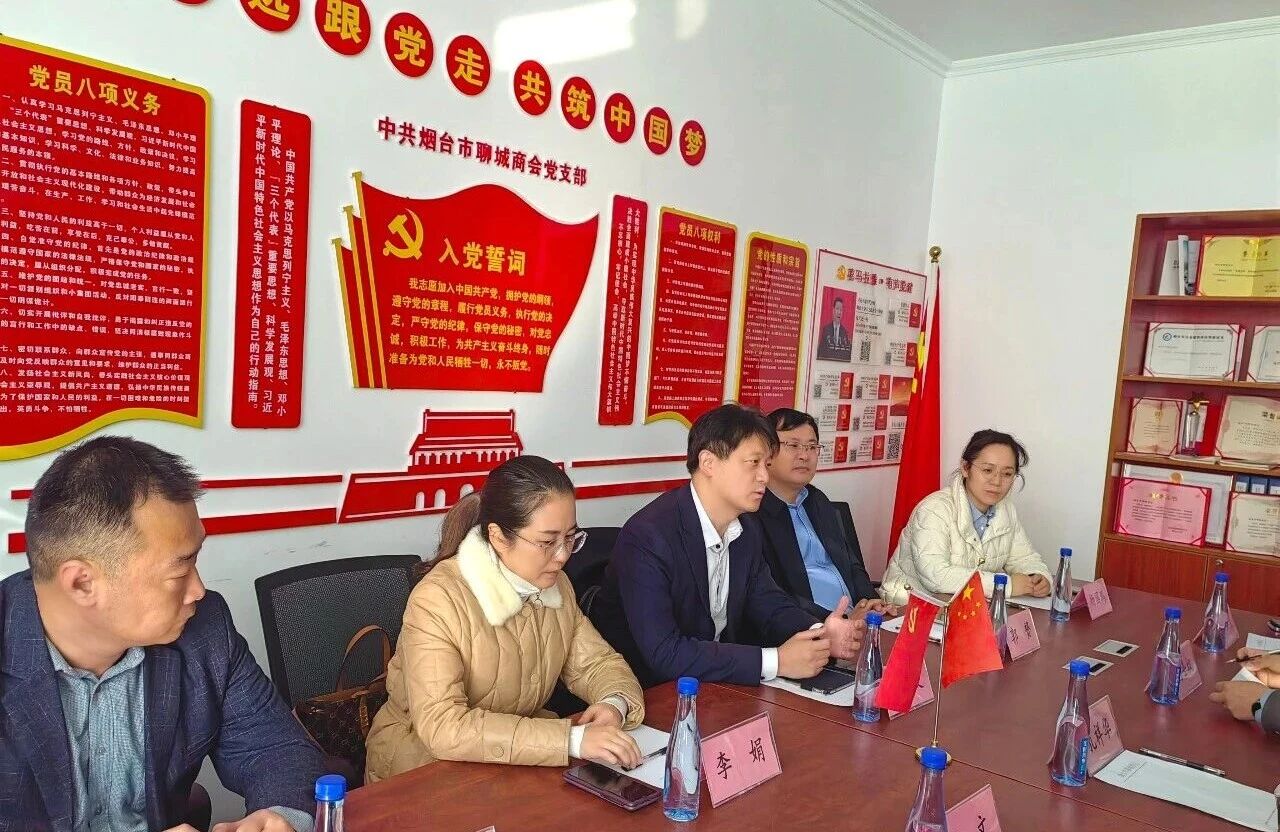 2025年12月24日,烟台市工商联副主席唐鹏斐、李娟(巫山工商联挂职),工商联经联科高雁、烟台融媒体中心副主任郭赟一行莅临我会座谈交流,专项对接山东海洋大集暨2026烟台新春年货会筹备事宜,政企同心聚力共促新春消费。我会会长孔祥华、党支部书记杨世权、副会长刘文,理事栾深勃、杨国鹏、苏红利、会员刘新立等参加座谈。