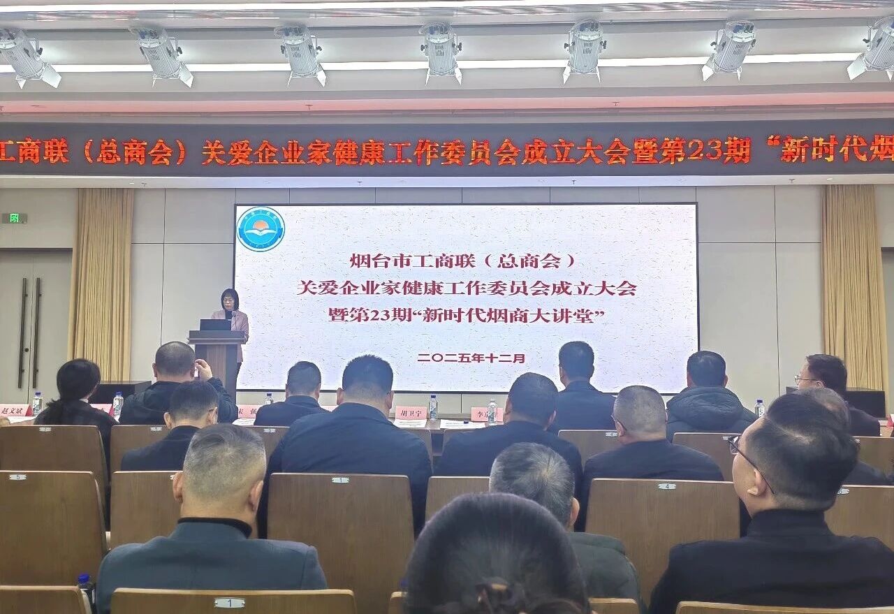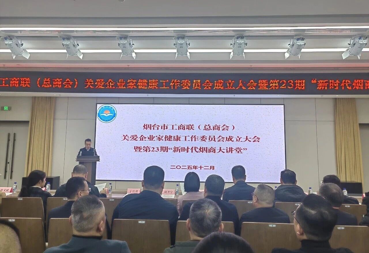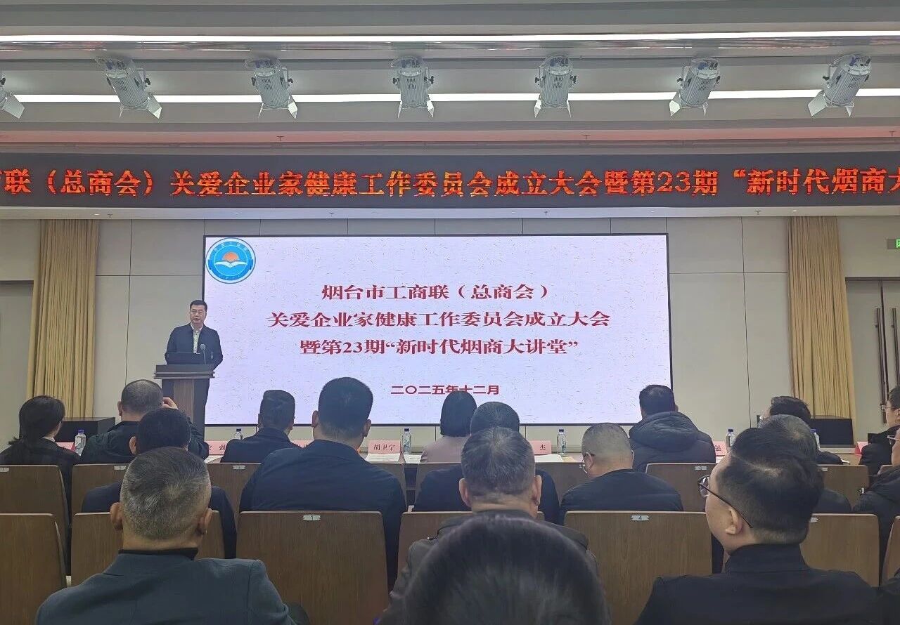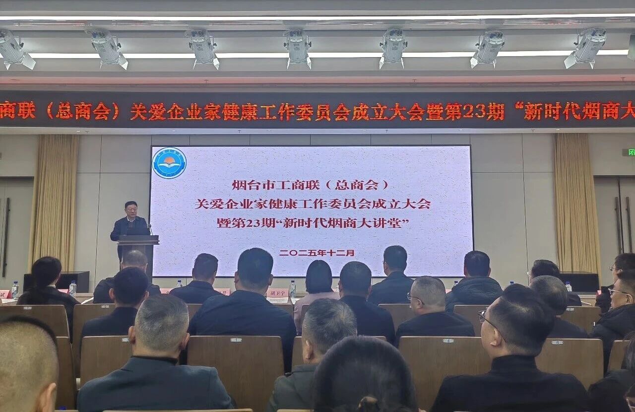 12月29日上午,烟台市工商联(总商会)在芝罘区委党校召开关爱企业家健康工作委员会成立大会,并举办第23期“新时代烟商大讲堂”。市政协副主席、市工商联主席李京波出席并讲话。市卫健委、市体育局、市医保局、毓璜顶医院、烟台山医院、市中医院、滨医附属医院、文登整骨烟台医院、卫生健康职业学院、市心理学会相关负责同志,部分市工商联执常委,直属商会和团体会员商协会负责同志和企业家代表约180人参加大会。我会副会长兼秘书长高庆峰、会员刘玉春等参加活动。