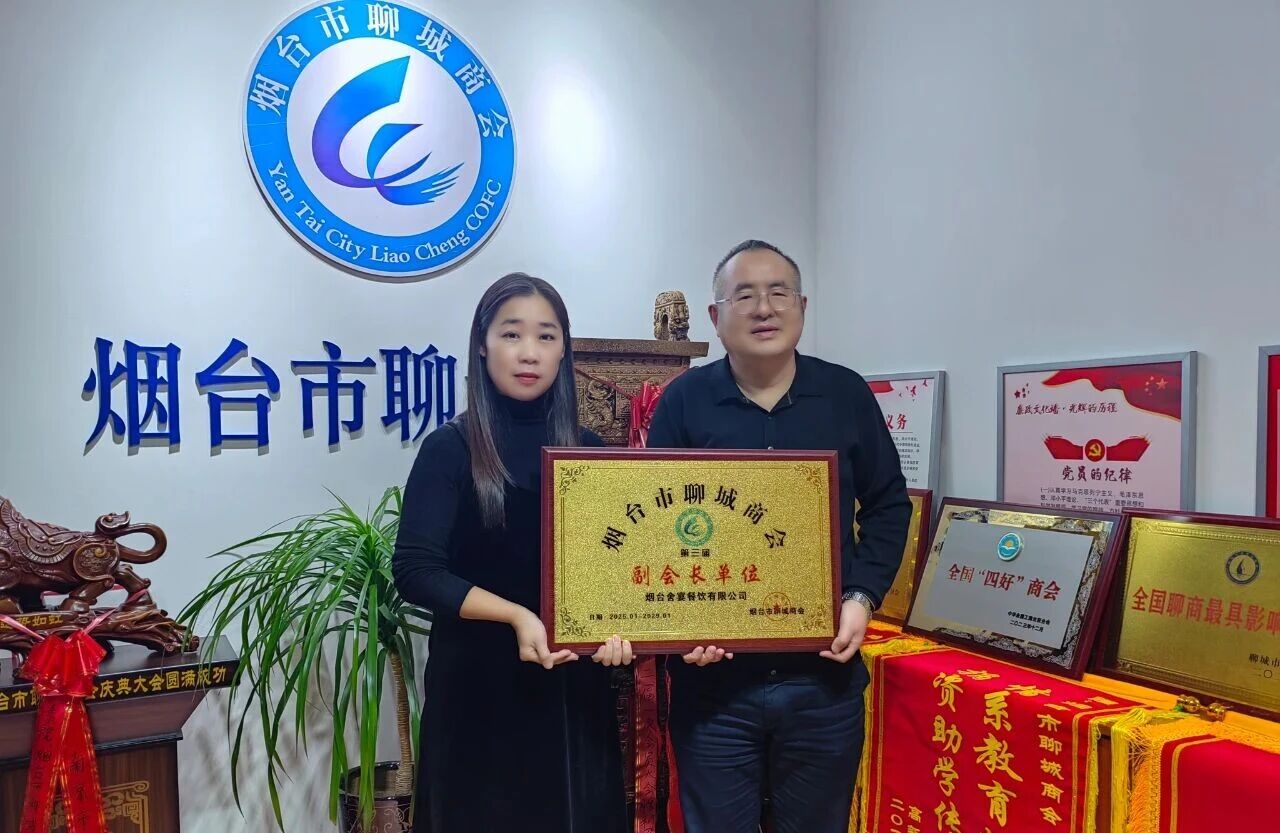 为烟台舍宴餐饮有限公司刘文刘总授副会长牌