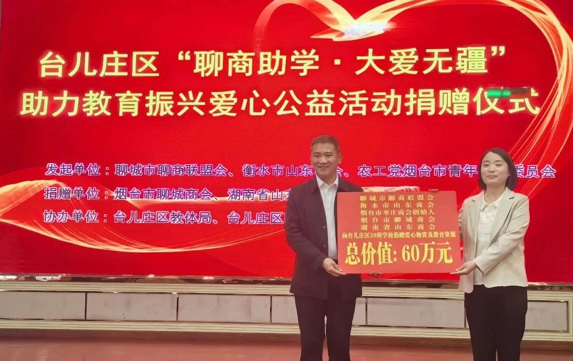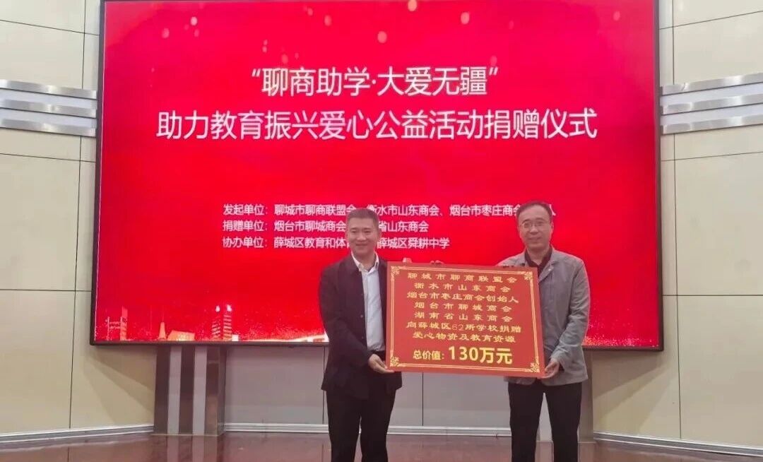 公益事业持续发力:以“聊商助学 大爱无疆”为公益品牌,持续开展助力教育振兴爱心捐赠活动,先后走进高新区实验中学、烟台大学附属小学翡翠校区,以及枣庄峄城区翰林小学、台儿庄区明远实验小学、山亭区第四十中学、薛城区舜耕中学和烟台福山区西关小学、芝罘区青华中学等多所学校,累计捐赠500万元教育物资及教学资源,用实际行动支持教育事业发展。组织会员企业参与“聊商学子助学计划”,向聊城籍眼疾学子郑昌坤捐赠1.7万元助学金;同时积极倡导会员企业在自然灾害救助、社区公益服务等活动中捐款捐物,用实际行动传递温暖。